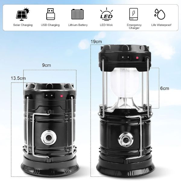 Păstrați lampa încărcată cu două opțiuni convenabile: energie solară și încărcare USB. Celulele solare încorporate în partea superioară a lămpii asigură o încărcare ecologică, în timp ce cablul USB inclus oferă o alternativă rapidă și fiabilă. Această funcționalitate dublă vă asigură că aveți întotdeauna o rezervă, indiferent dacă vă aflați în afara rețelei sau în apropierea unei surse de alimentare.