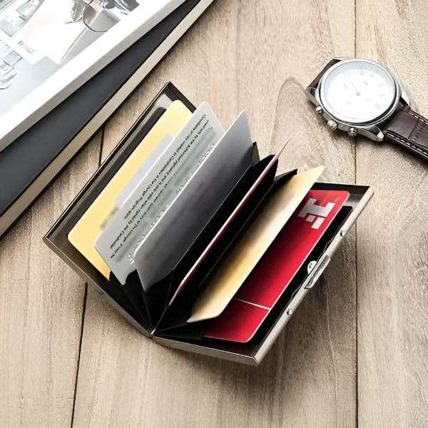 Fabricat din oțel inoxidabil de înaltă calitate, acest portofel este mai durabil și rezistent decât variantele din plastic sau aluminiu, oferind o protecție superioară pentru cardurile dumneavoastră.