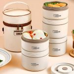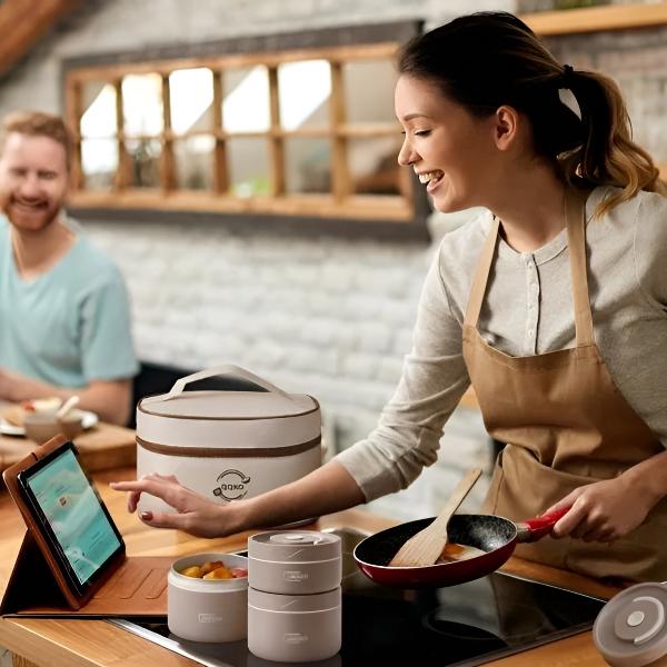 Bucurați-vă de mese calde gătite acasă oriunde ați merge cu acest set de recipiente pentru alimente cu mai multe straturi.