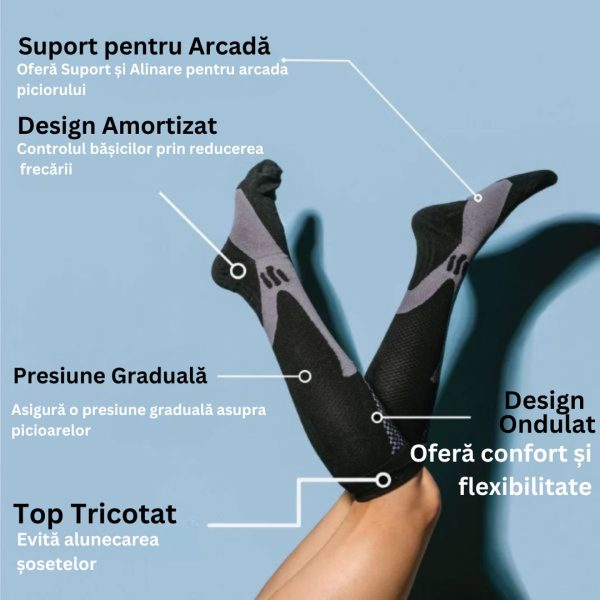 Aceste șosete ajută la îmbunătățirea fluxului sanguin, ceea ce înseamnă mai puțină oboseală și mai multă energie pentru ziua ta. Perfecte pentru ore lungi în picioare sau activitate fizică intensă.